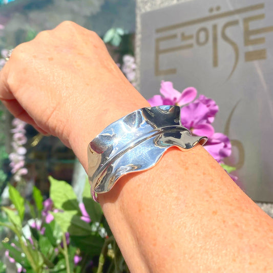 Modern Sterling Silver Wave Design Bangle