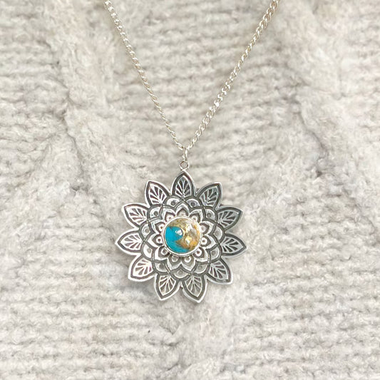 Sterling Silver Bohemian-Inspired Turquoise Mandala Necklace