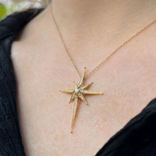 18ct Yellow Gold and Diamond Edwardian Style Star Necklace