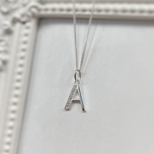 Sterling Silver and Cubic Zirconia Initial Pendant (A-Z Available)