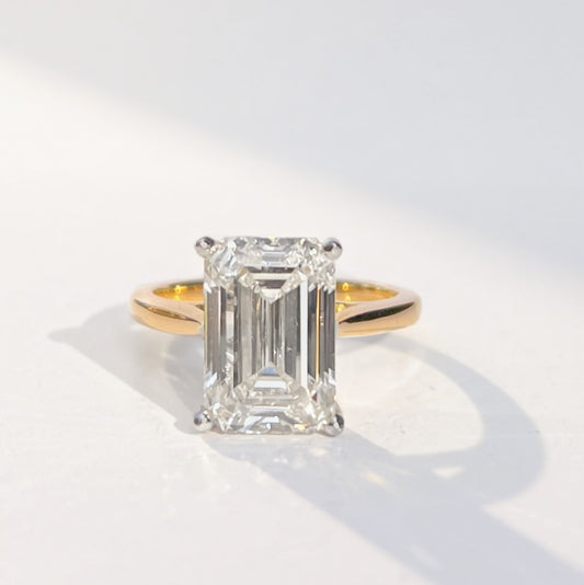 Showstopping 18ct Yellow Gold 5ct Emerald-Cut LAB-GROWN Diamond Engagement Ring - Size L ½