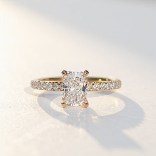 Elegant 18ct Yellow Gold Radiant-Cut LAB-GROWN Diamond Engagement Ring - Size N