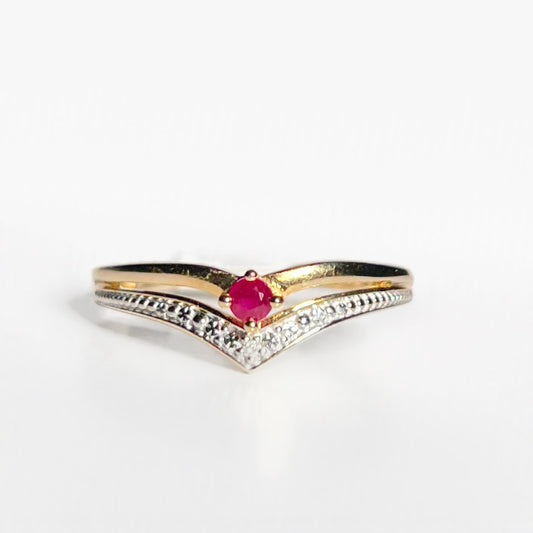 Vintage 9ct Yellow Gold Ruby Wishbone Stacking Ring - Size P