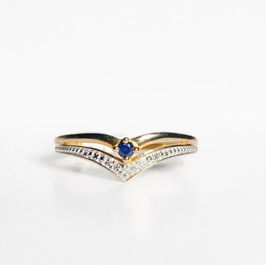Vintage 9ct Yellow Gold Sapphire Wishbone Stacking Ring - Size P
