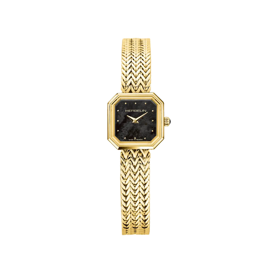 Herbelin Octogône Ladies Steel Gold Watch with Mother of Pearl Black Dial