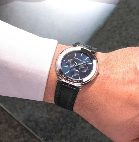 Herbelin Newport Heritage Steel Watch with Blue Dial & Leather Strap