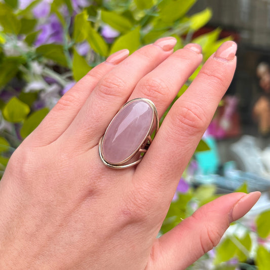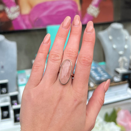 Large Sterling Silver Oval Cut Pink Pink Rose Quartz Ring - Adjustable Size