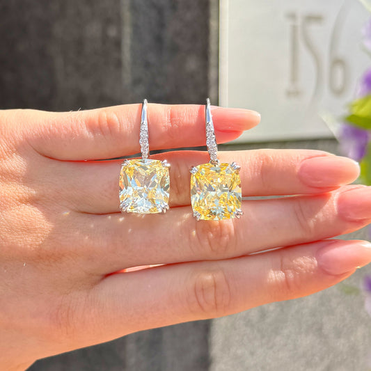 Lemon Yellow Square Cut Cubic Zirconia Sterling Silver Drop Earrings