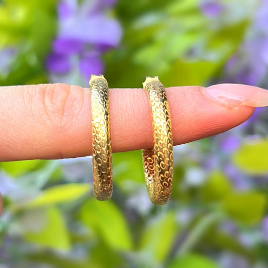 9ct Gold Plated Chunky Textured Medium Size Hoop Earrings