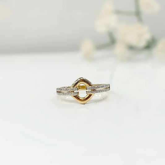 9ct Yellow Gold and Diamond Eye Shape Ring - Size O