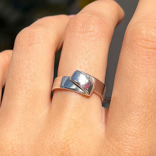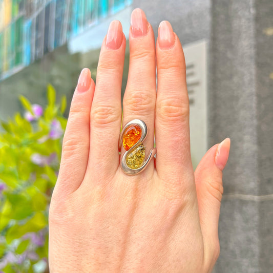 Sterling Silver Green & Orange Amber Twist Ring - Size M