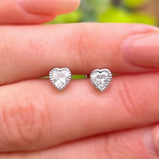 Sterling Silver Cubic Zirconia Heart Stud Earrings