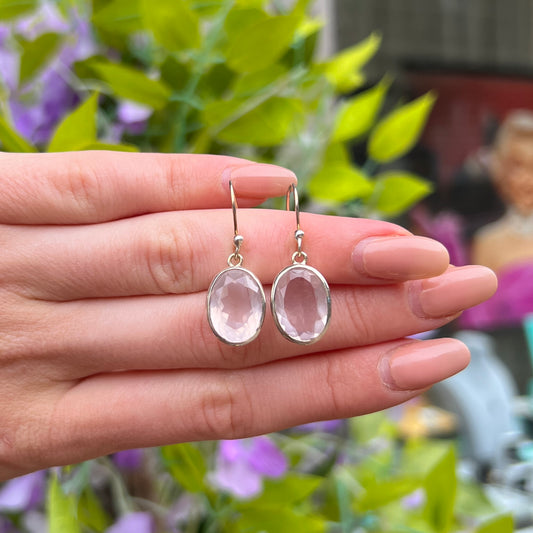 Sterling Silver Faceted Pink Rose Quartz Drop Earrings