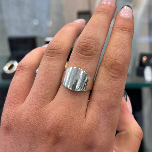 Sterling Silver Enolgated Oval Flat Opal Ring - Size N ½