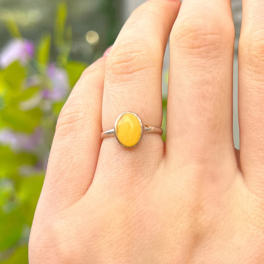 Sterling Silver Yellow Butterscotch Amber Ring - Size I