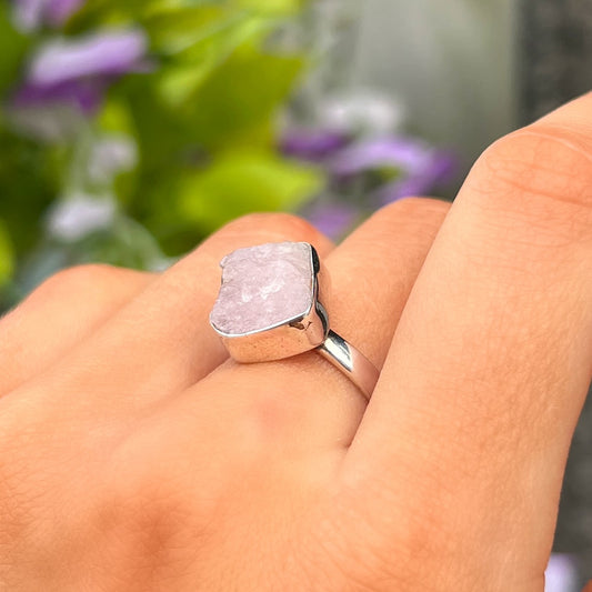 Sterling Silver Square Rough Cut Pink Rose Quartz Ring - Size O