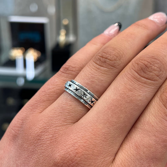 Sterling Silver XL Chunky Boho Inspired Purple Amethyst Ring - Size R