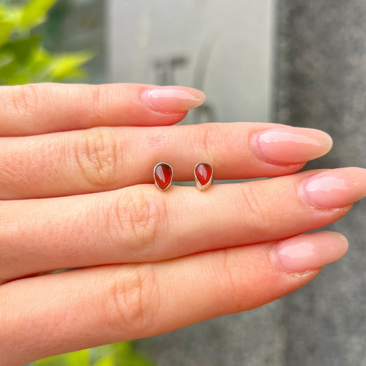 Tiny Sterling Silver Orange Carnelian Pear Stud Earrings