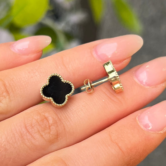 9ct Yellow Gold Black Onyx Clover Stud Earrings