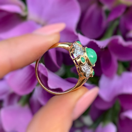 9ct Yellow Gold Art Deco Reproduction Green Jade and Diamond Ring – Size N ½