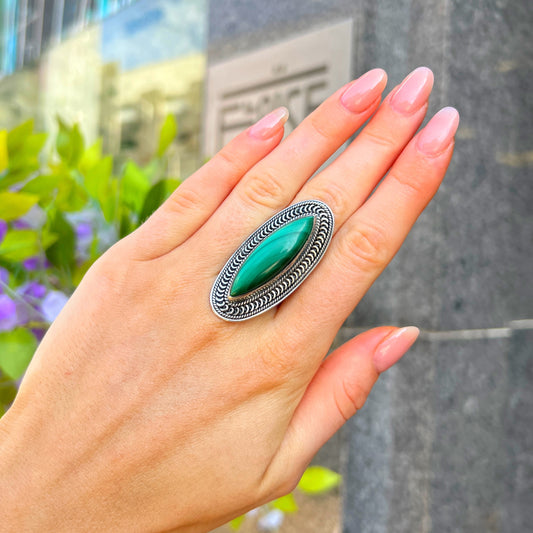 XL Chunky Boho Inspired Green Malachite Ring - Size R