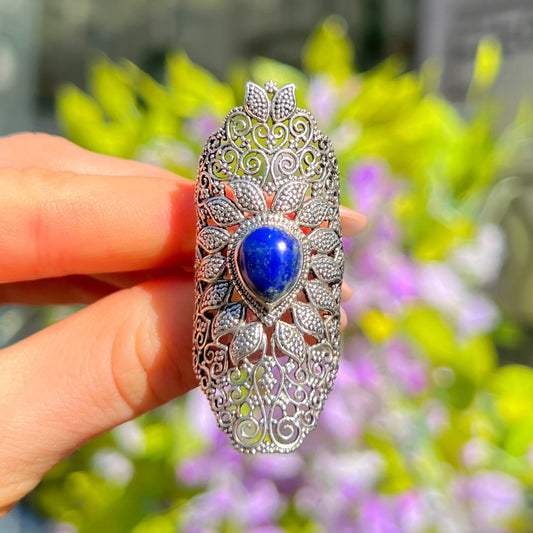 XL Chunky Sterling Silver Boho Blue Lapis Lazuli Ring - Size O