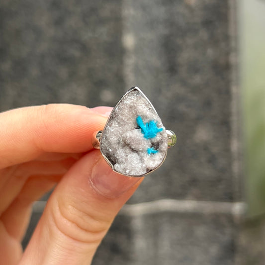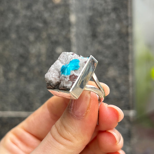 Chunky Sterling Silver Blue Turquoise Boho Ring - Size R