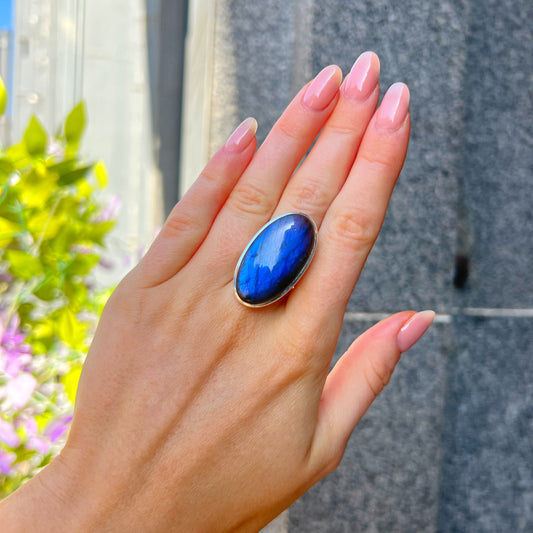 Chunky Sterling Silver Dark Blue Labradorite Ring - Adjustable Size