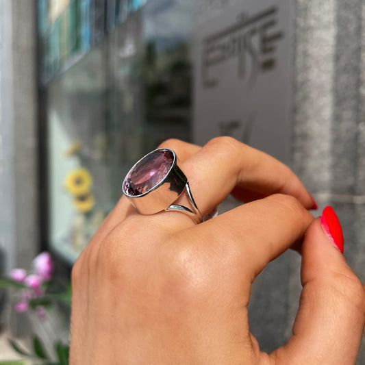 Chunky Boho Inspired Amethyst Ring - Size R ½