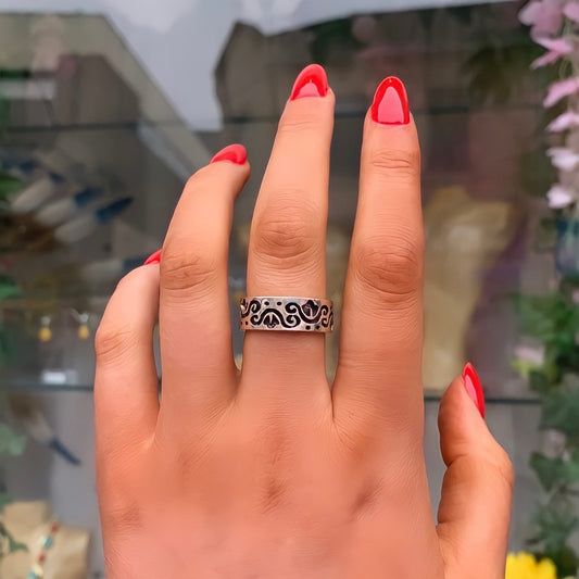 Chunky Sterling Silver Oxidised Patterned Band Ring - Size O ½
