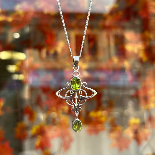 Sterling Silver Peridot Art Nouveau Inspired Necklace