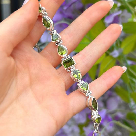 Unique Sterling Silver Peridot and Real Pearl Beaded Bracelet