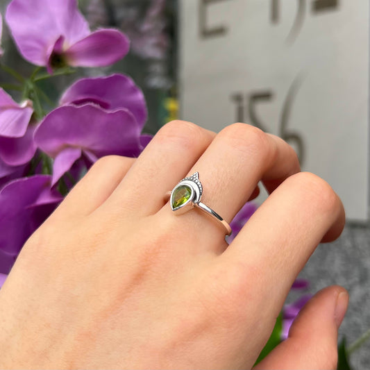 Sterling Silver Bohemian Pear Cut Faceted Peridot Ring - Size V 1/2