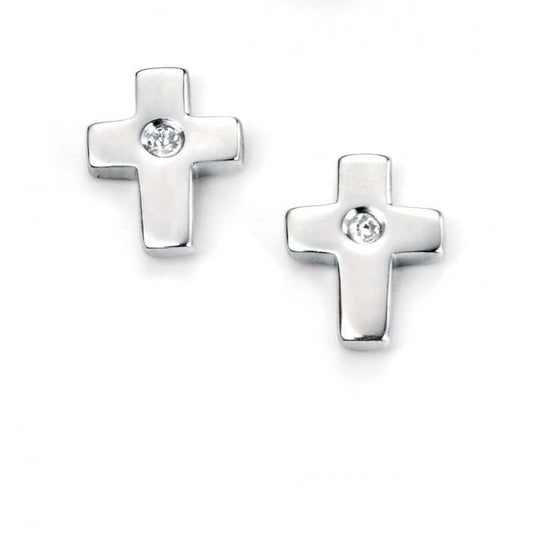 ‘D for Diamond’ Sterling Silver & Diamond Mini Cross Stud Earrings