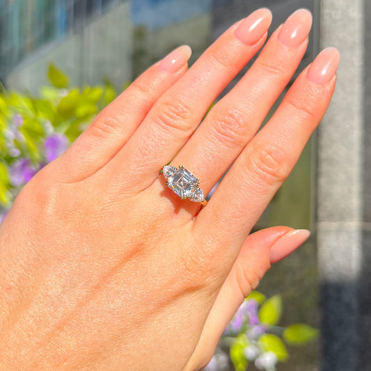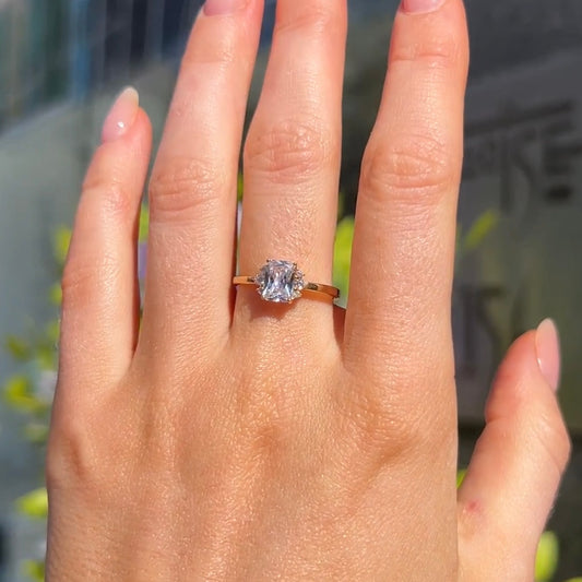 9ct Yellow Gold Emerald Cut Cubic Zirconia Ring - Size N