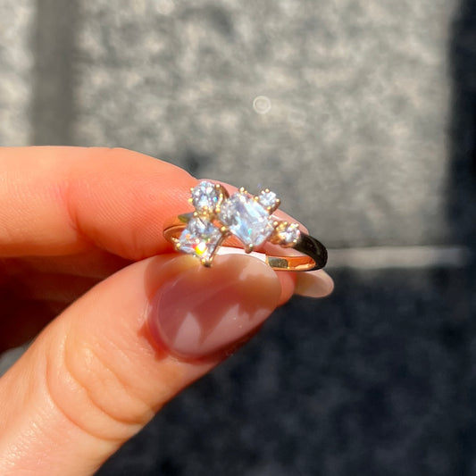 9ct Yellow Gold Unique Asymmetric Cluster Cubic Zirconia Ring - Size N