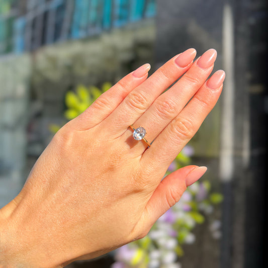 9ct Yellow Gold Oval Cut Claw Set Solitaire Clear Cubic Zirconia Ring - Size N