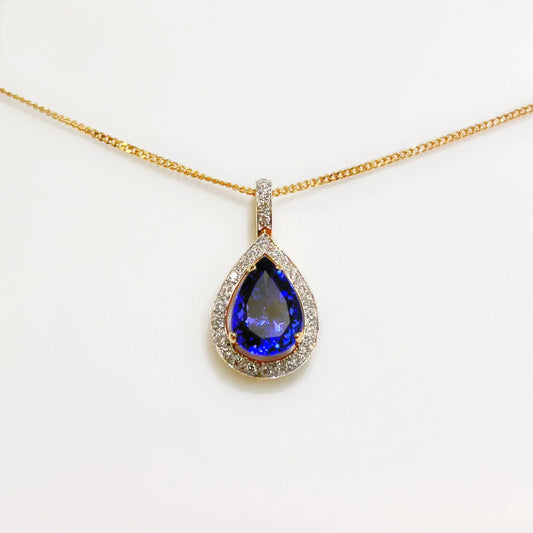Spectacular Quality Vintage 18ct Yellow Gold Pear Shaped Blue Tanzanite and Diamond Necklace