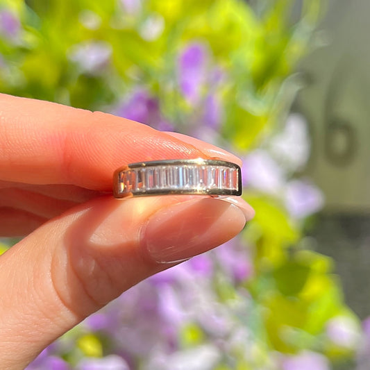 9ct Yellow Gold Baguette Cut Tension Set Cubic Zirconia Band Ring - Size N ½