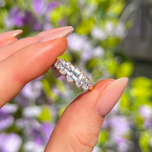 9ct Yellow Gold Oval Cut Five Stone Cubic Zirconia Ring - Size M ½