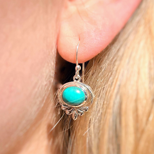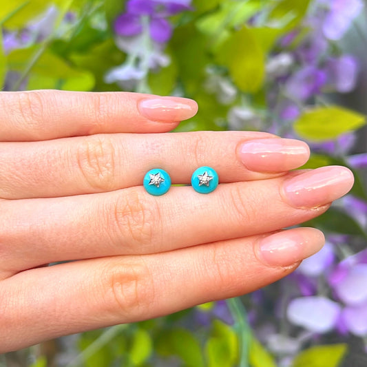 9ct Gold Dainty Turquoise & Diamond Stud Earrings