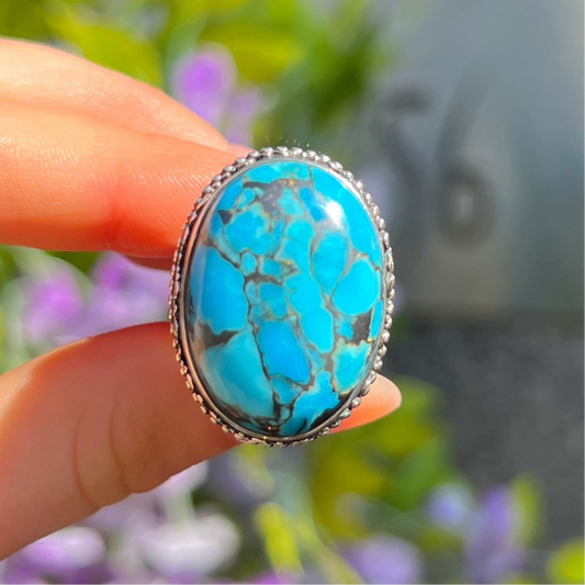 Chunky Sterling Silver Blue Turquoise Boho Ring - Size R