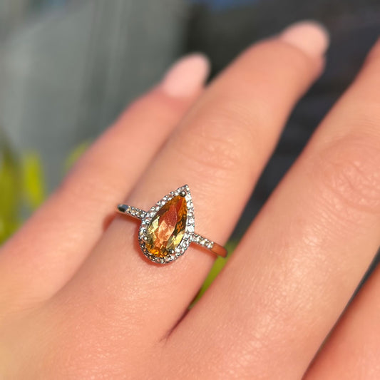 The Belle Ring - 9ct Yellow Gold Citrine and Diamond Pear Halo Size N