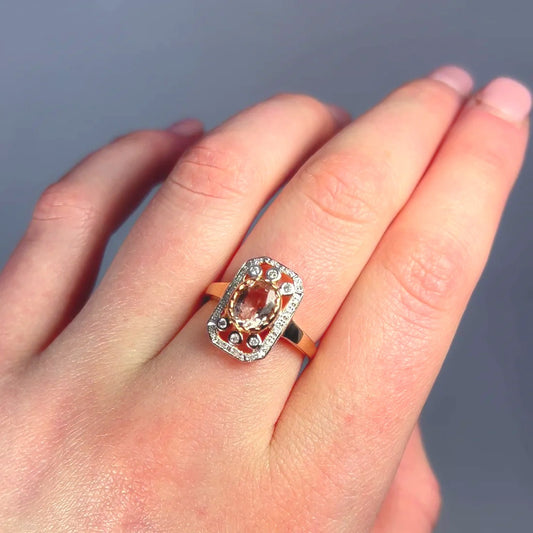 Art Deco Inspired 9ct Rose Gold Morganite and Diamond Ring – Size N ½