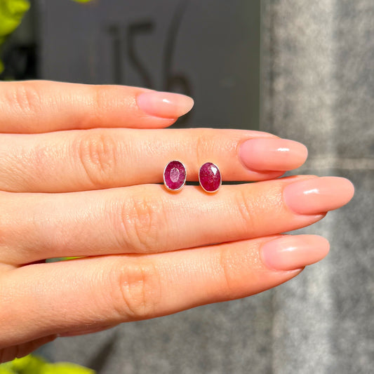 Red Oval Cut Ruby Sterling Silver Stud Earrings