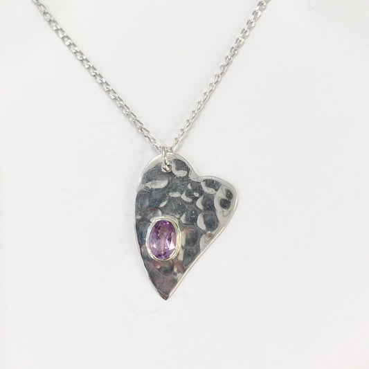 Sterling Silver Amethyst Hammered Heart Drop Earrings