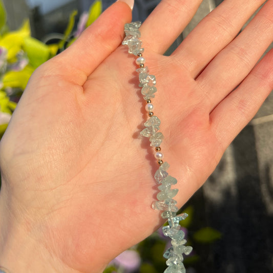 9ct Gold Dainty Sterling Silver Aquamarine & Pearl Beaded Bracelet