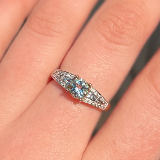 Ethereal 18ct White Gold Aquamarine and Diamond Ring - Size M ½