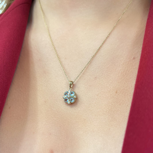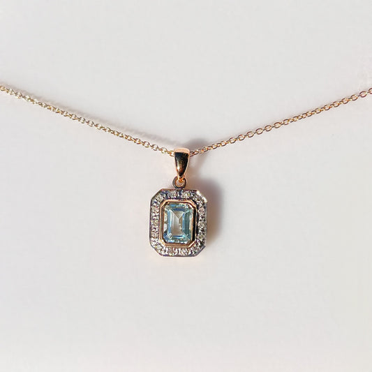 9ct Yellow Gold Aquamarine and Diamond Dainty Art Deco Inspired Necklace
