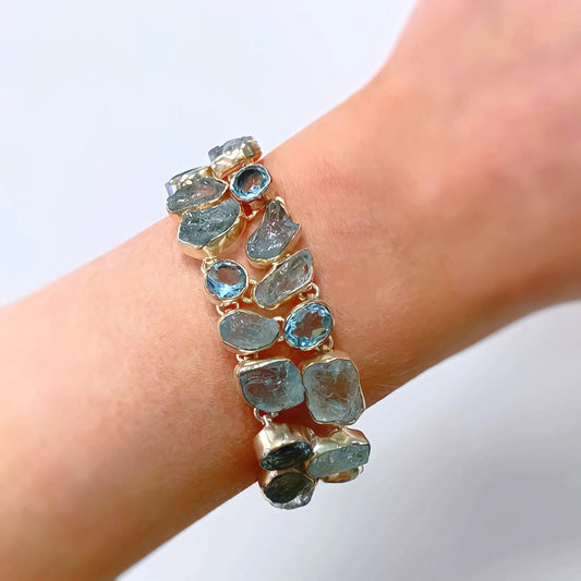 Sterling Silver Raw Aquamarine and Blue Topaz Bracelet